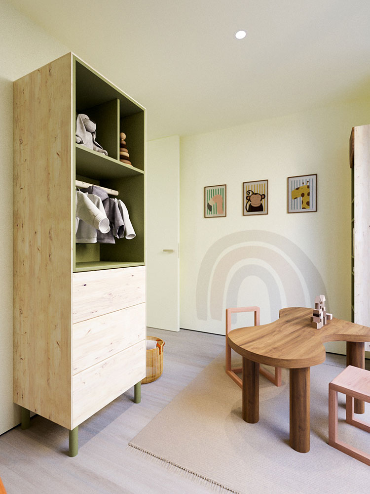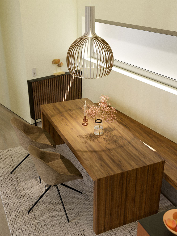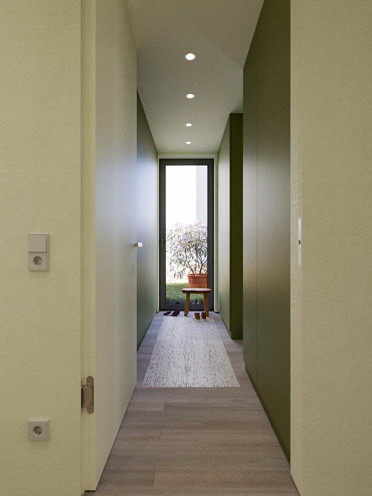 Die Grundrisse für EG und OG sind bis auf wenige Abweichungen identisch. Die in den Bildern gezeigten, fest eingebauten, Ausstattungsdetails sind in beiden Wohnungen gleich. Bewegliche Ausstattungsdetails sowie Wohn- und Polstermöbel sind unverbindliche Einrichtungsvorschläge.